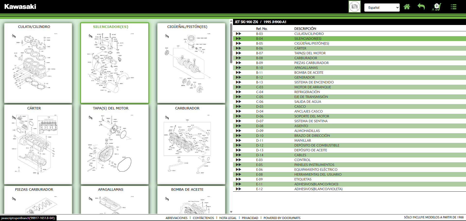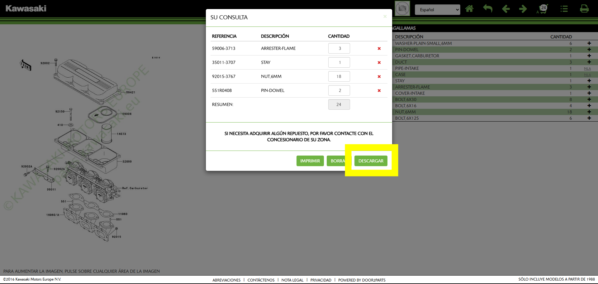 En Nautilus te lo ponemos fácil para que consigas los recambios oficiales Kawasaki que necesitas para tu moto de agua o embarcación. Accede al catálogo online, añade tus piezas al pedido, descarga el archivo y mándanoslo desde el formulario que encontrarás al final de esta página.